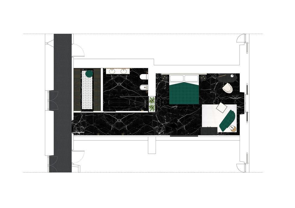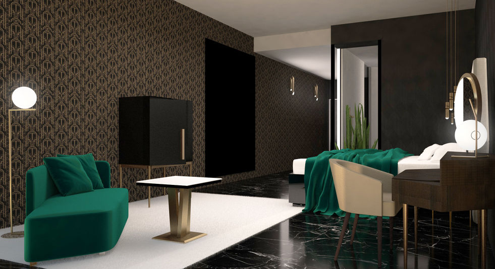 Gli anni ‘20 rappresentano il tema centrale di questo progetto, in quanto incarnano i valori di unicità e lusso che appartengono ai TownHouse Hotels. Analizzando la location e lo spazio, è stata progettata una Suite e una Lobby che si ispirassero a quegli anni. Le carte da parati, il mobile bagno ed i mobili della camera da letto sono stati realizzati su misura.